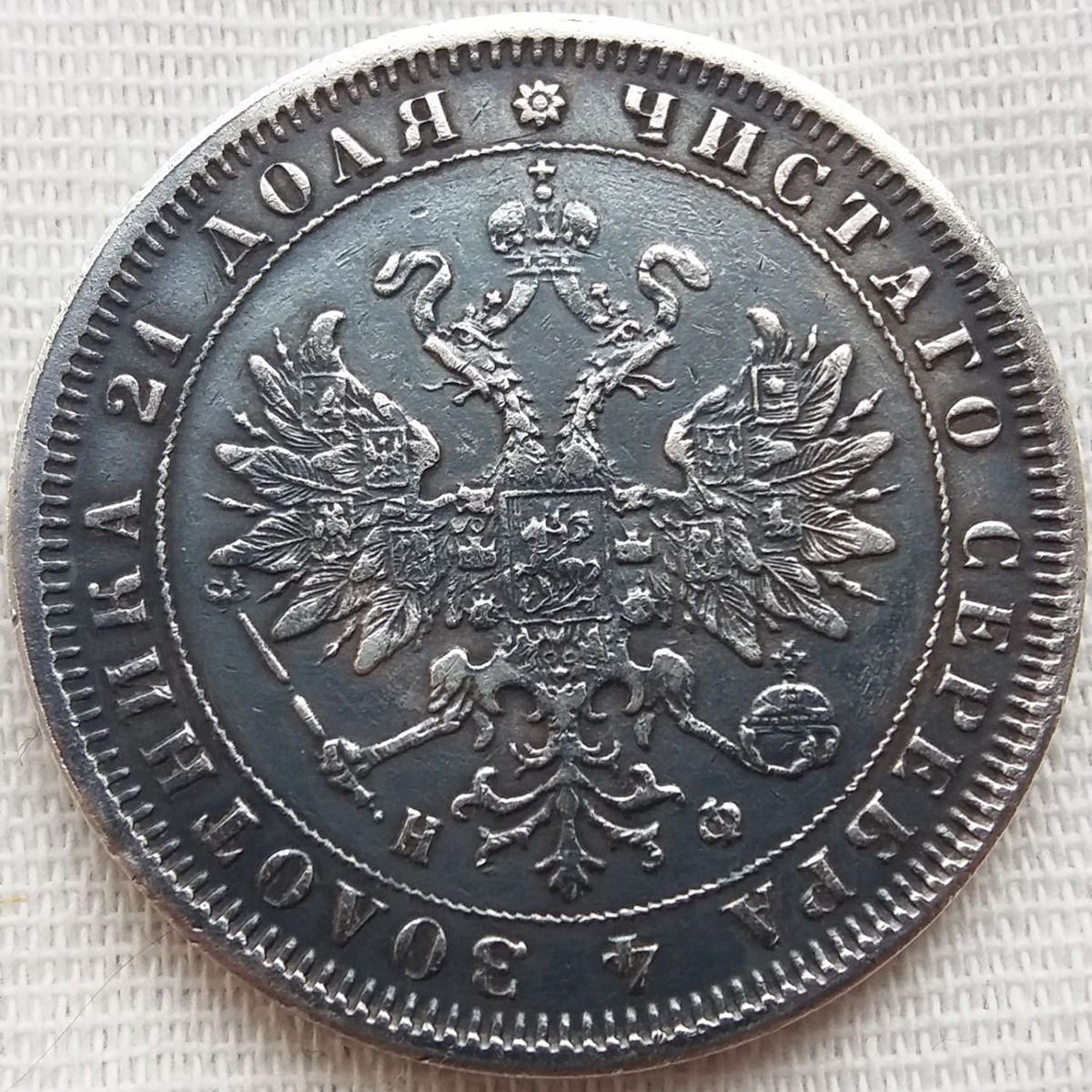Серебряный рубль 1880 года с инициалами минцмейстера Николая Фоллендорфа (НФ), отчеканенный на Санкт-Петербургском монетном дворе (СПБ) в период правления Александра II. Монета является подделкой, о чём прямо указано в тексте поста. Подобные копии часто изготавливаются для коллекционеров, не знакомых с подлинными экземплярами.
