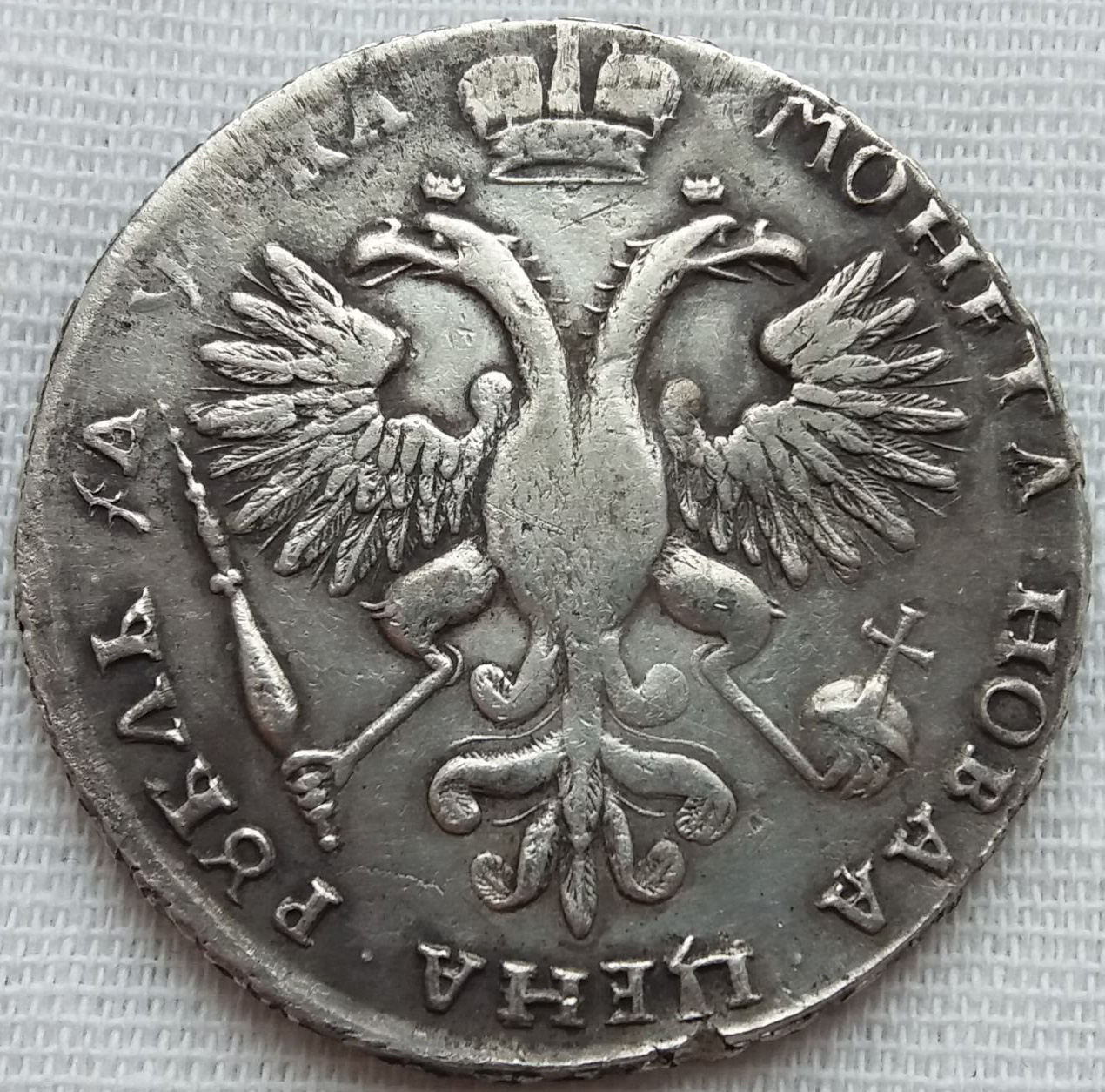 Монета представлена как серебряный рубль 1721 года, отчеканенный в правление Петра I. Однако, согласно консенсусу в комментариях, это современная подделка. Оригинальные рубли этого года являются редкими и ценными, что делает их частой мишенью для фальсификаторов.