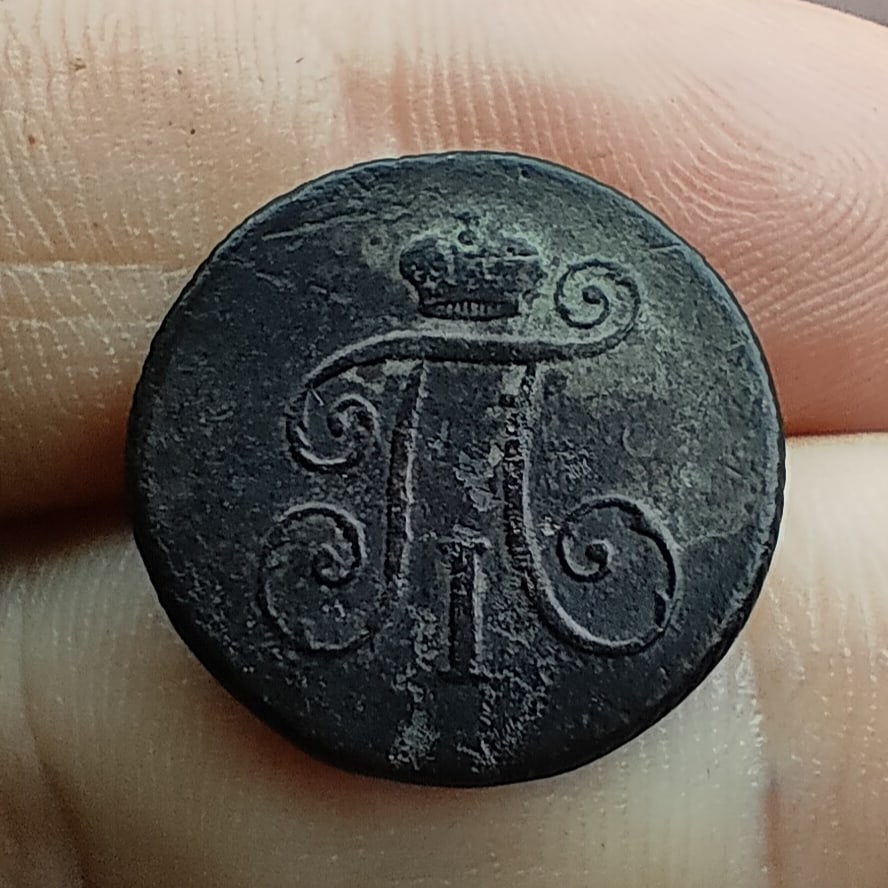 Медная деньга 1798 года с инициалами минцмейстера КМ (Колпинский монетный двор), отчеканенная в правление императора Павла I. В оригинале это монета регулярного чекана, однако представленный экземпляр является подделкой, о чём прямо указано в описании поста.
