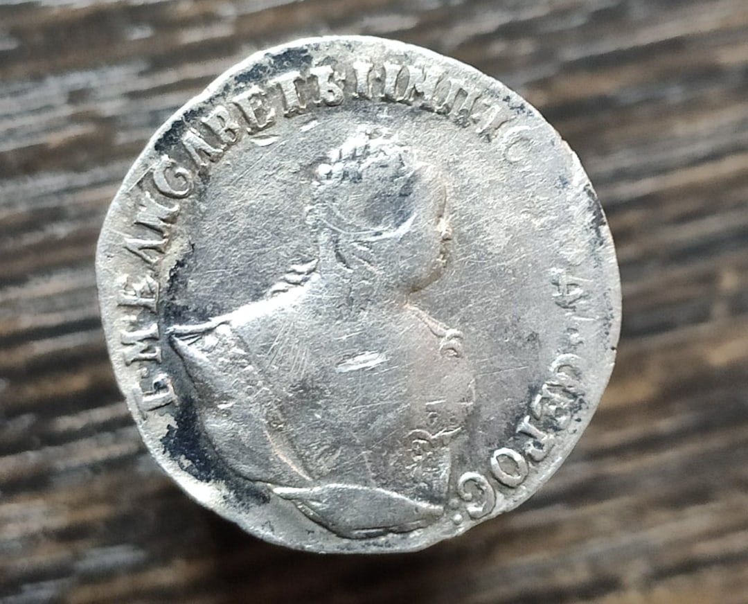 Гривенник 1748 года Елизаветы Петровны — подлинная, но повреждённая монета