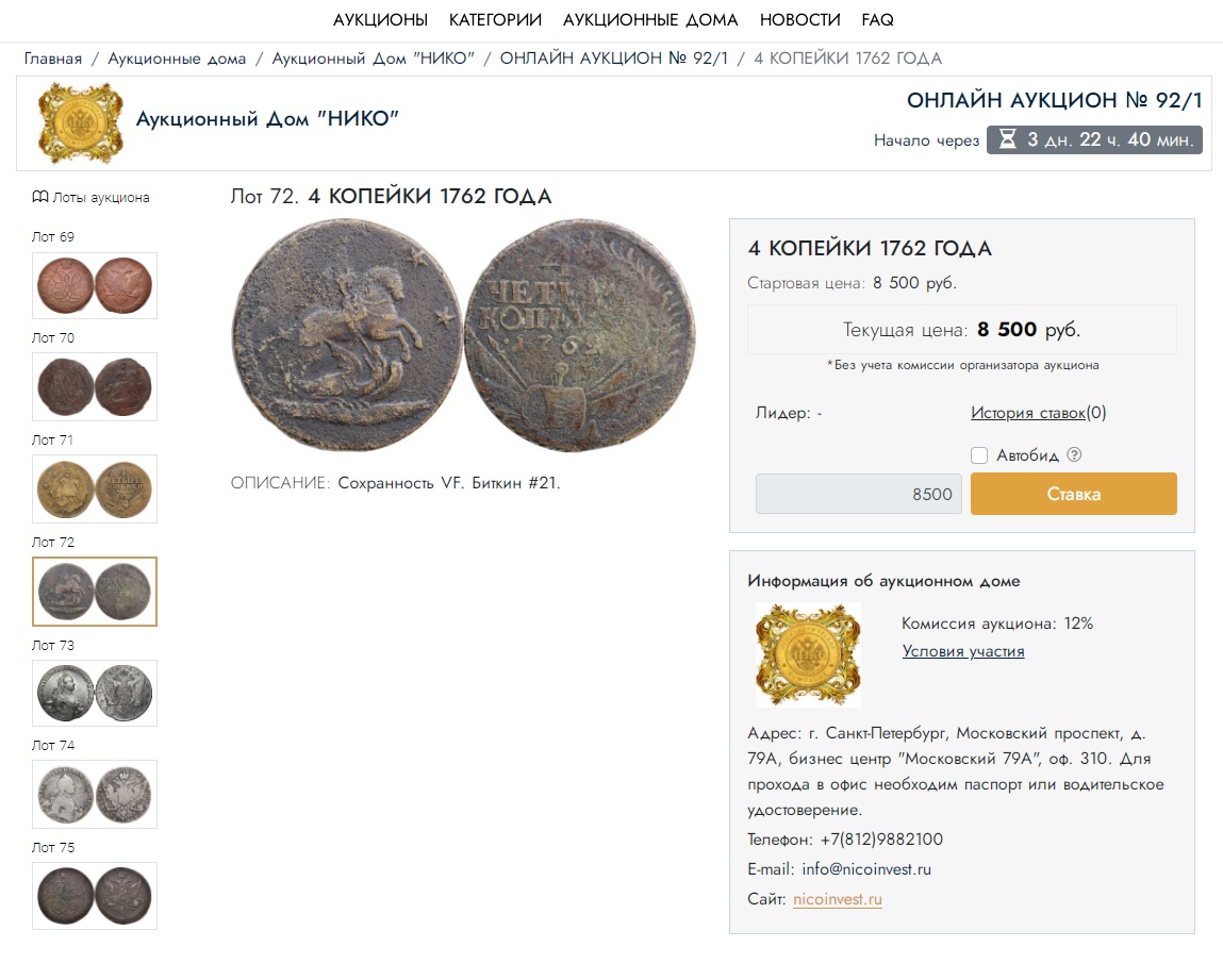 4 копейки 1762 года — поддельная монета Елизаветы Петровны