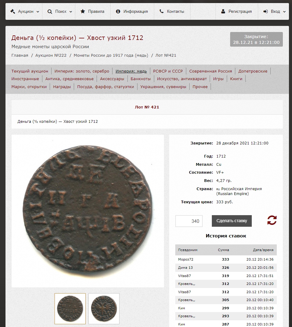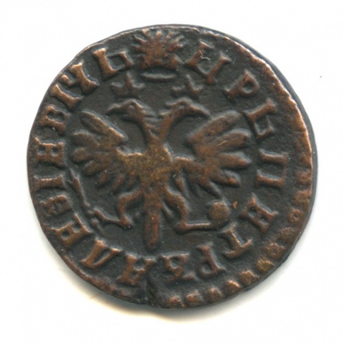 Денга 1712 года Петра I — подделка для аукциона ANUMIS