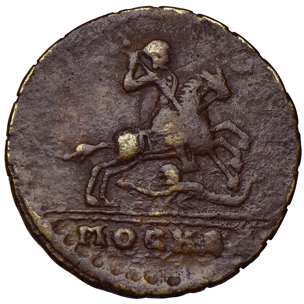 Медная копейка 1728 года, отчеканенная в правление Петра II. Монета является качественно состаренной литой подделкой, зафиксированной экспертами ещё в 2010 году. Её опасность для коллекционеров оценивается как высокая (4 из 5).