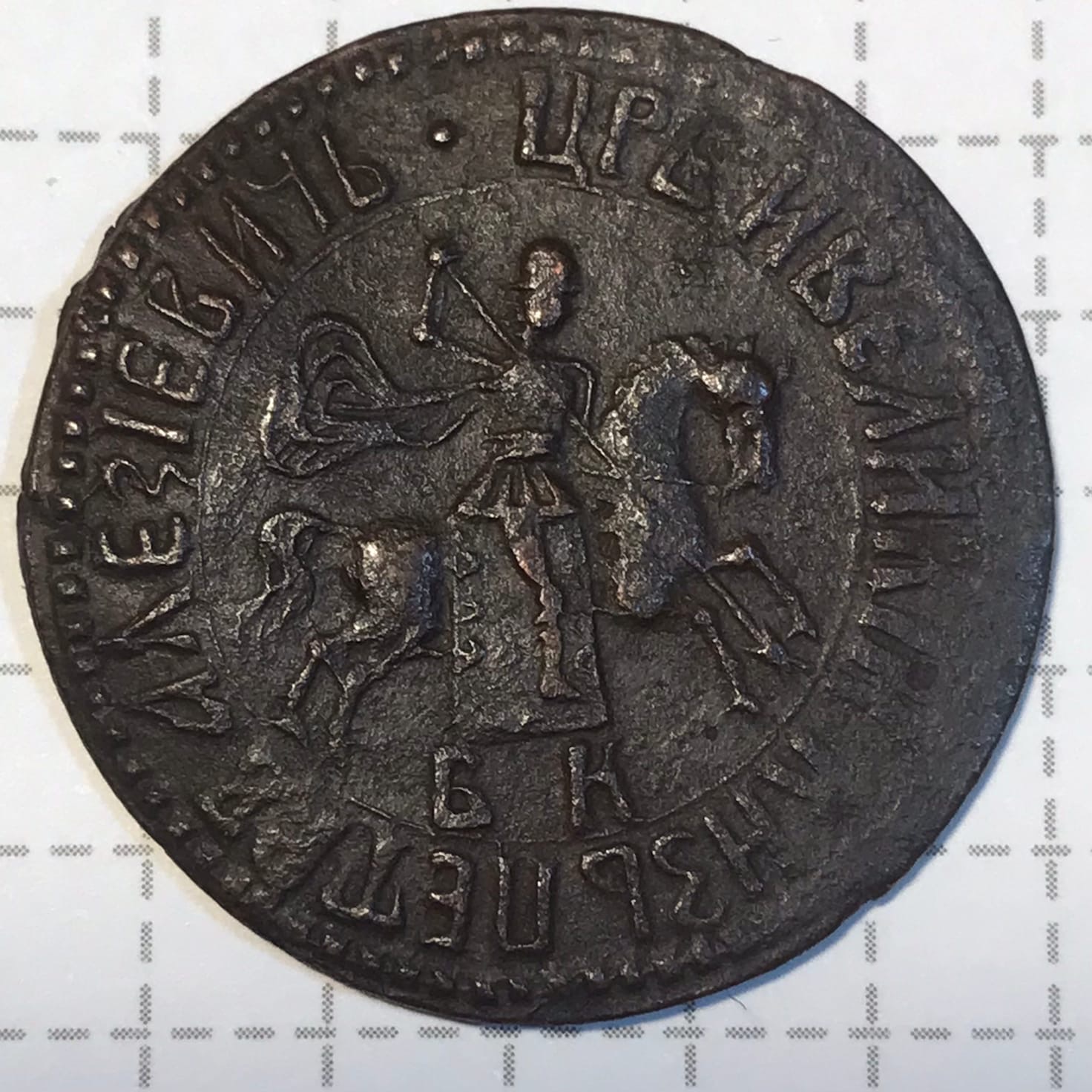 Медная копейка 1705 года, отчеканенная в период правления Петра I. Монета относится к раннему периоду монетной реформы, для неё характерен специфический штемпельный рисунок и качество чеканки того времени. На основании консенсуса в комментариях экспертов монета признана подлинной (оригиналом).