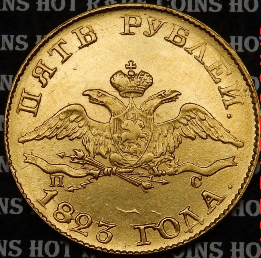 5 рублей 1823 года СПБ — копия золотой монеты Александра I