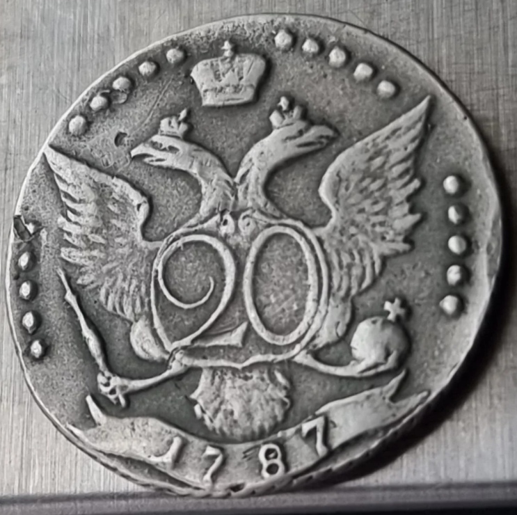 20 копеек 1787 года СПБ — поддельная монета Екатерины II