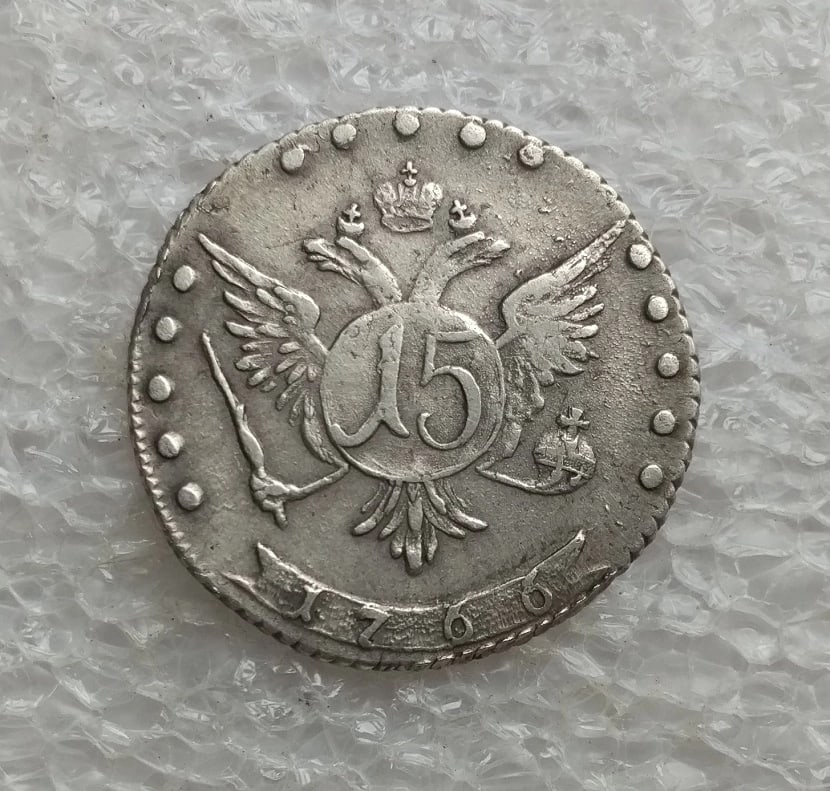 15 копеек 1766 года ММД — подлинная монета Екатерины II