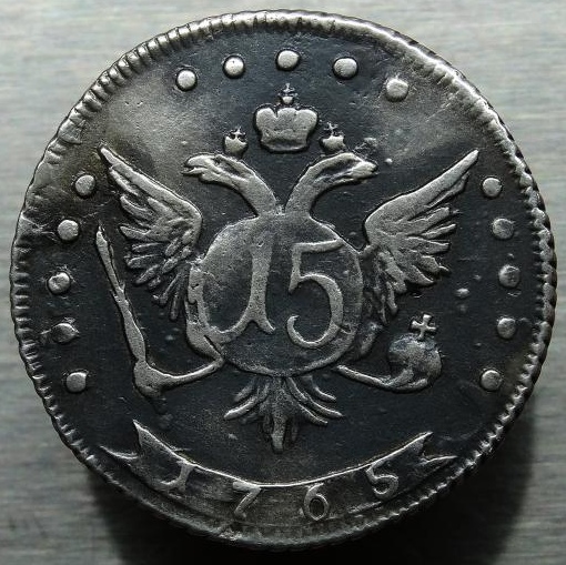 15 копеек 1765 года ММД — поддельная монета Екатерины II