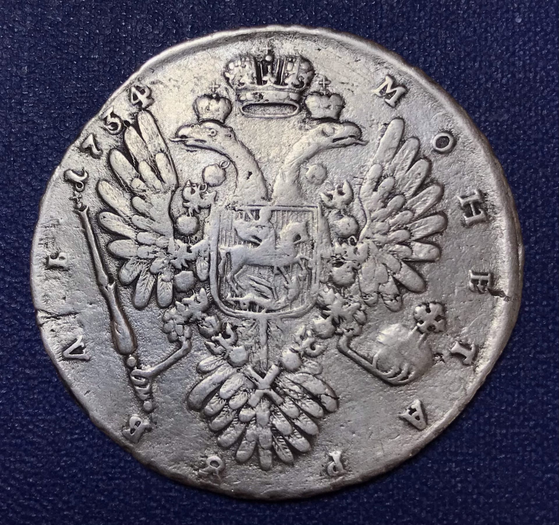 Рубль 1734 года Анны Иоанновны — грубая литая подделка