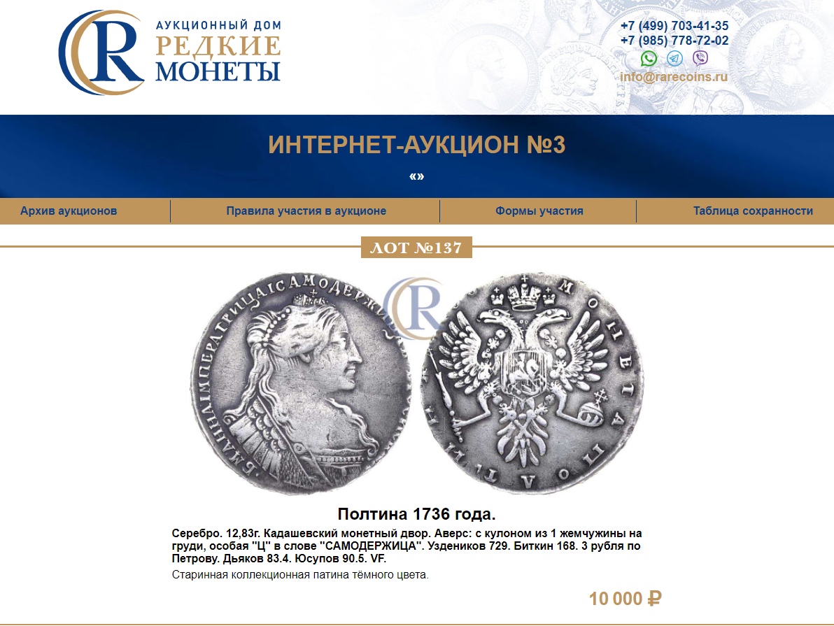 Полтина 1736 года Анны Иоанновны — подделка или копия