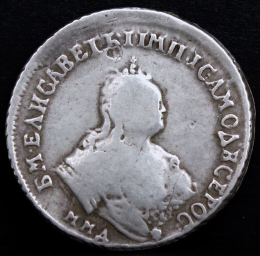Полуполтинник 1747 года — поддельная монета Елизаветы Петровны