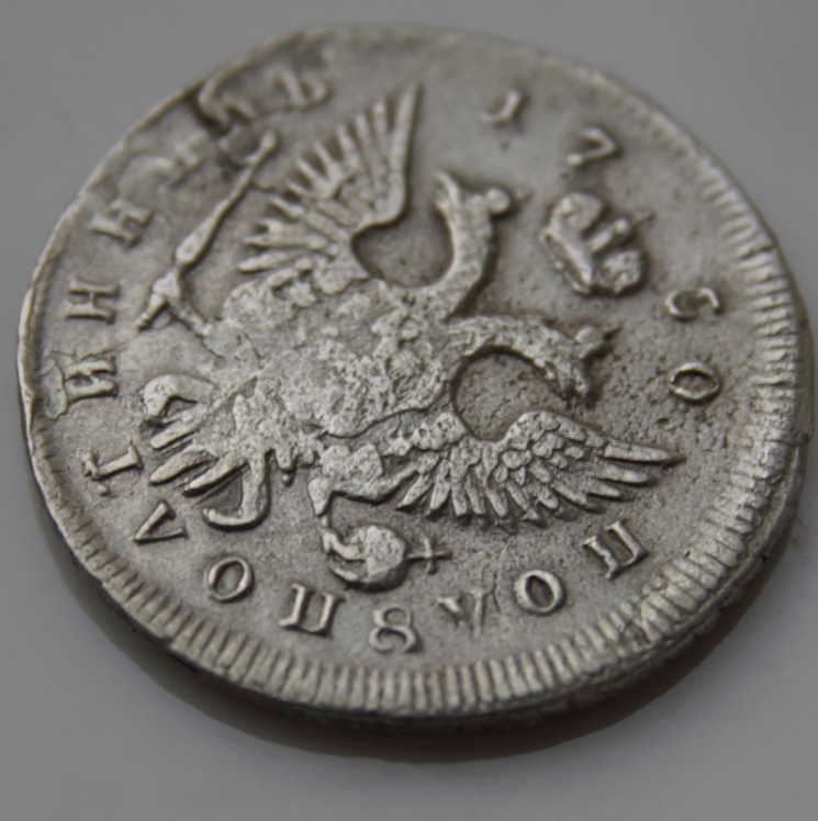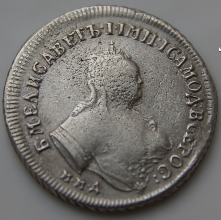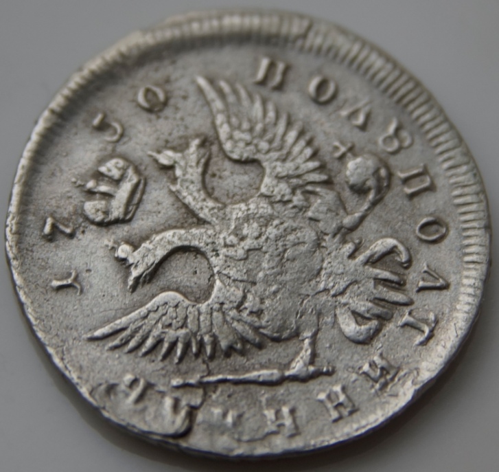 Монета номиналом полуполтинник (25 копеек) с датой 1750 года и обозначением Московского монетного двора (ММД). Относится к периоду правления императрицы Елизаветы Петровны. В оригинале такие монеты чеканились только на Санкт-Петербургском монетном дворе (СПБ или СПМ), поэтому данная монета является фейком-фантазией, не имевшей реального прототипа.