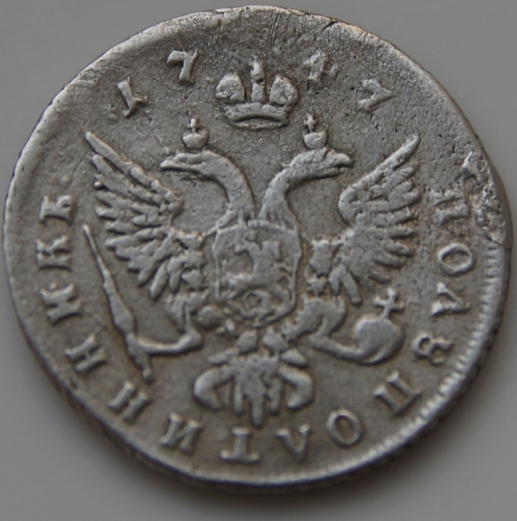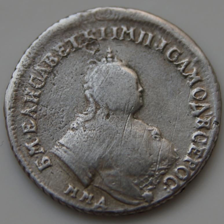Полуполтинник 1747 года ММД — поддельная монета Елизаветы Петровны
