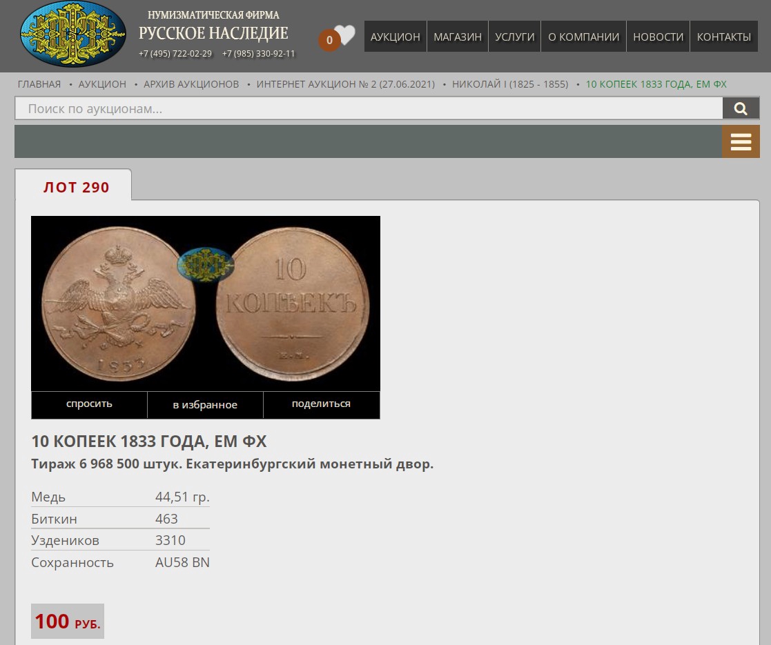 10 копеек 1833 года Николая I — поддельная монета
