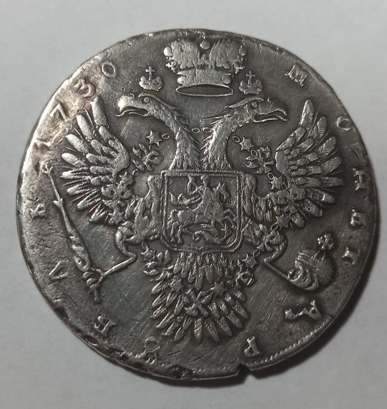 Монета представляет собой рубль 1730 года, отчеканенный в правление императрицы Анны Иоанновна. Основа монеты, вероятно, является подлинной, однако дата на ней была нарезана вручную в более позднее время, что является серьёзным вмешательством. Такой экземпляр считается браком или умышленной подделкой, его коллекционная и финансовая ценность крайне низка.