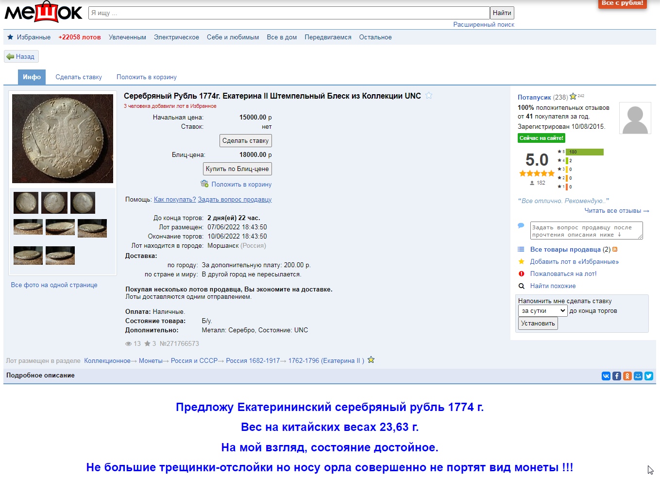 Так рубль Екатерины стоил бы в разы дороже, тем более такого "сохрана".. На это и стоит обратить внимание,- на цены.