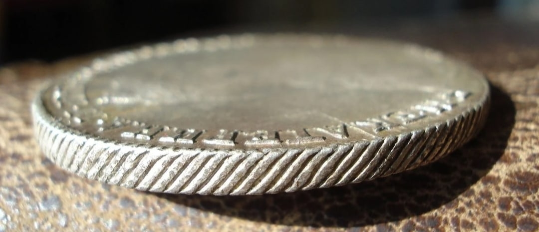 Монета представляет собой копию серебряного рубля 1780 года, отчеканенного при Екатерине II на Санкт-Петербургском монетном дворе (СПБ). Несмотря на качественное исполнение и красивое поле, она является подделкой. Эксперты отмечают неестественно рельефные буквы и несоответствующий оригиналу гурт, что выдаёт фальшивку.