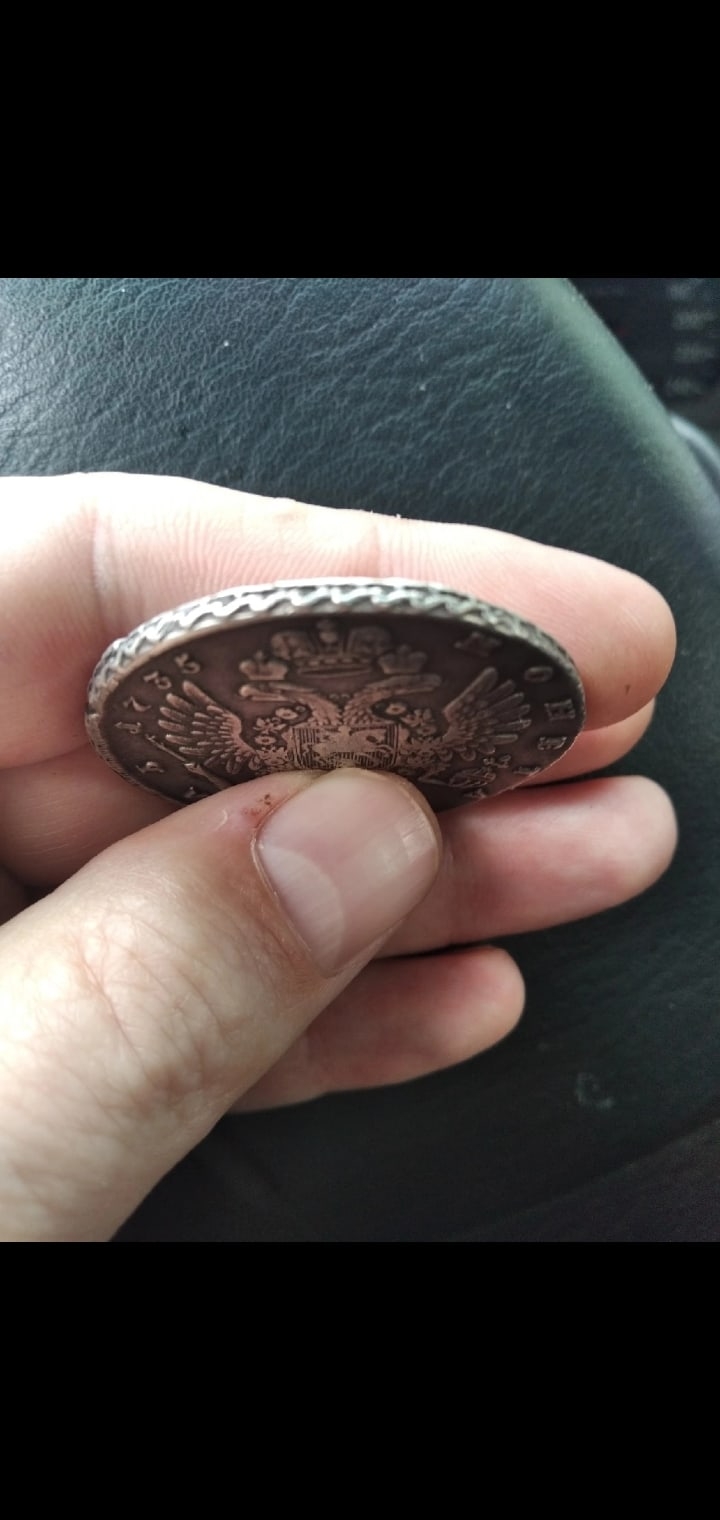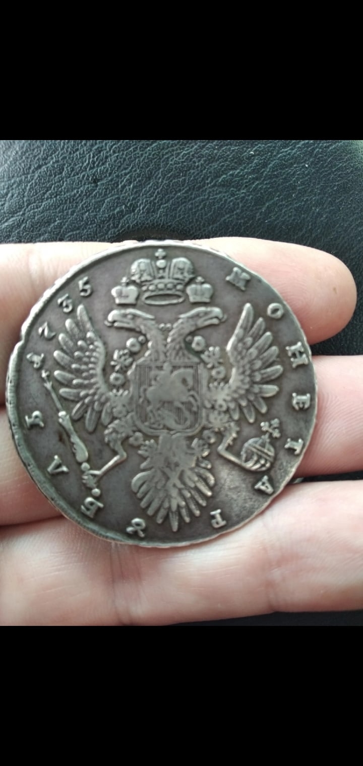 Монета фуфло. Вот она в оригинале https://numar.ru/coins/anna-ioannovna/serebryanye/1-rubl/1735. Семь жемчужин в волосах. Как говорят найди отличия.