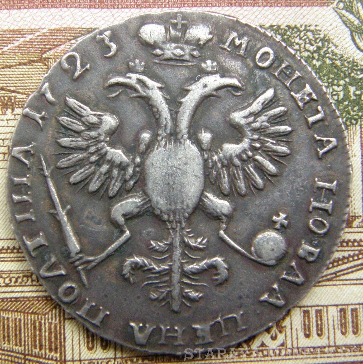 Монета представляет собой подделку полтины 1723 года, отчеканенной в период правления Петра I из серебра. Оригинальные монеты этого типа имеют высокую коллекционную ценность и сложны в исполнении, что делает их частой мишенью для фальсификаторов. Автор поста прямо указывает на неоригинальность экземпляра.