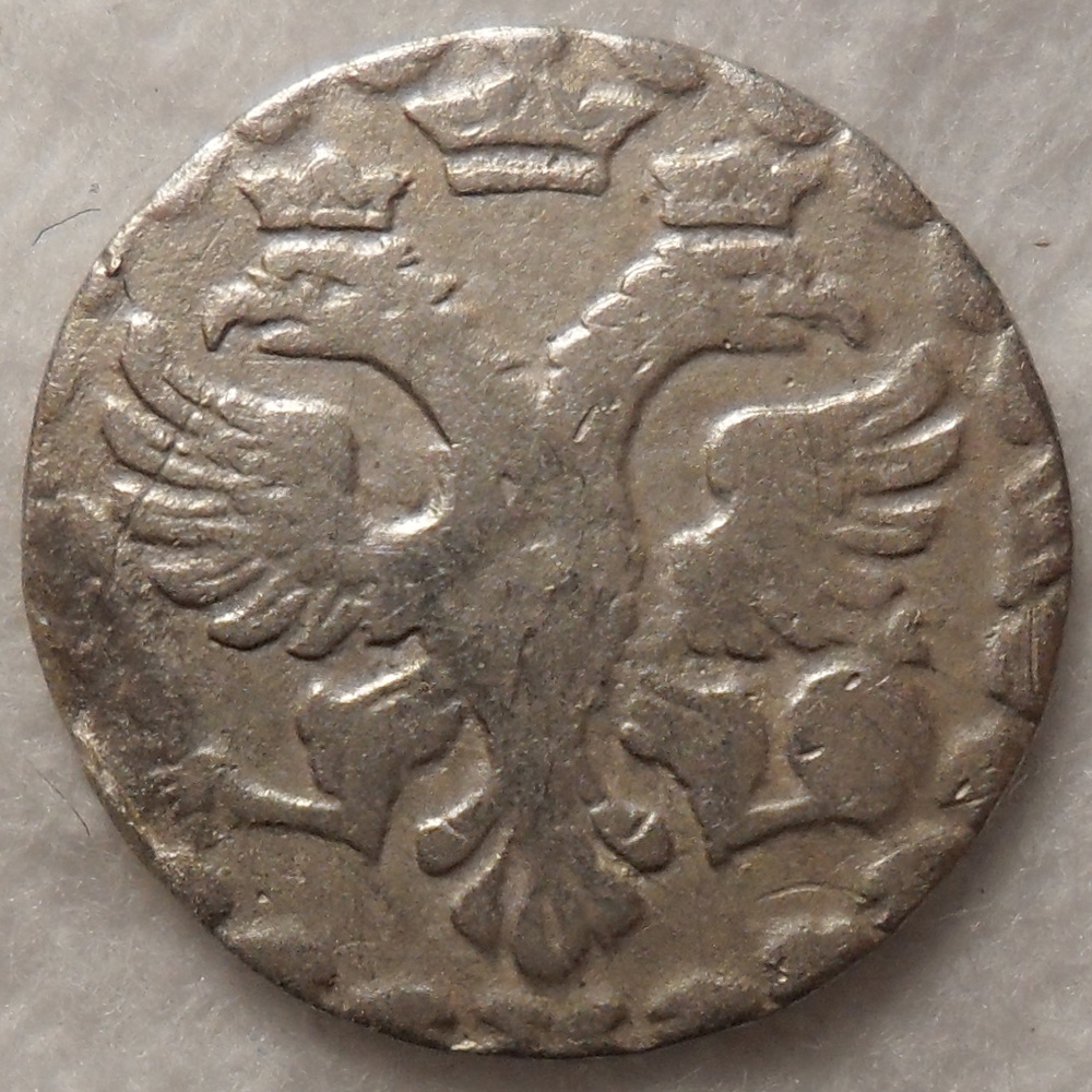 Монета представляет собой медный алтын 1704 года, отчеканенный в правление Петра I. Алтыны этого периода являются редкими и ценными, что делает их частой мишенью для фальсификаторов. В самом посте автор прямо указывает, что это подделка, что является основным фактором для определения.