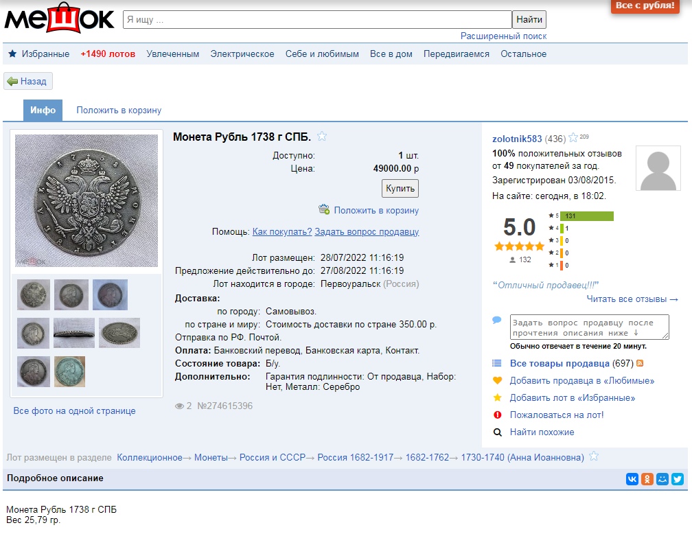 А на аукционе мешок можно и встретить подделку?