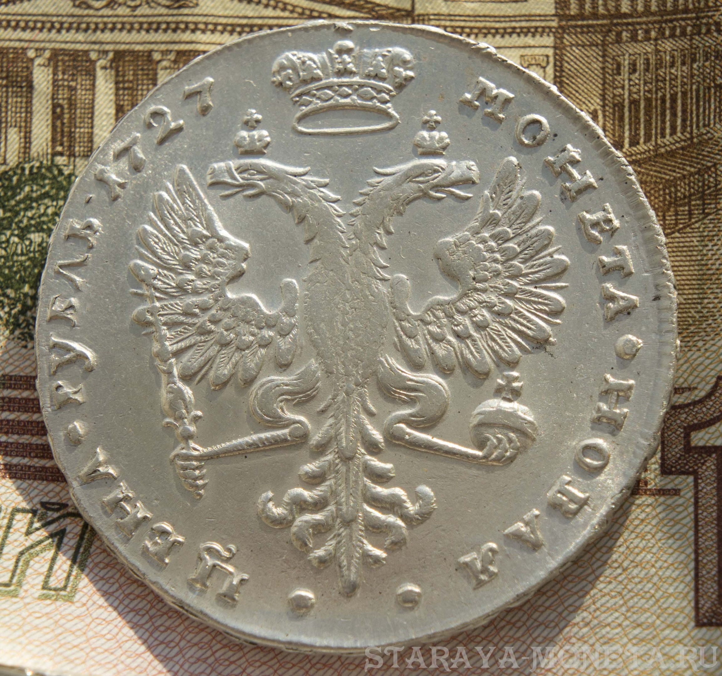Рубль 1727 года Екатерины I — классическая подделка