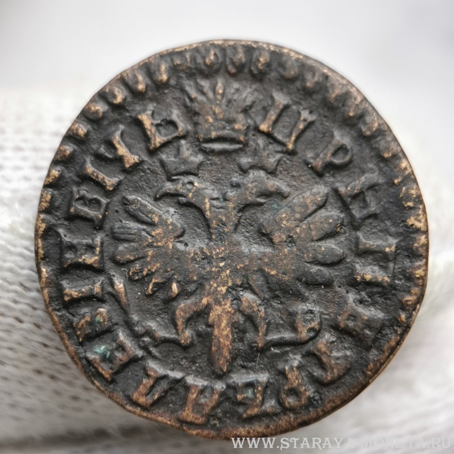 Денга 1712 года Петра I — классическая подделка