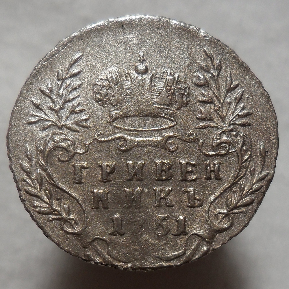Гривенник 1751 года — копия монеты Елизаветы Петровны