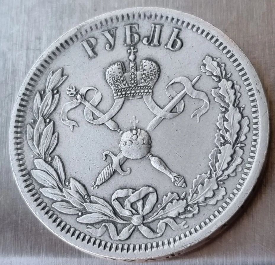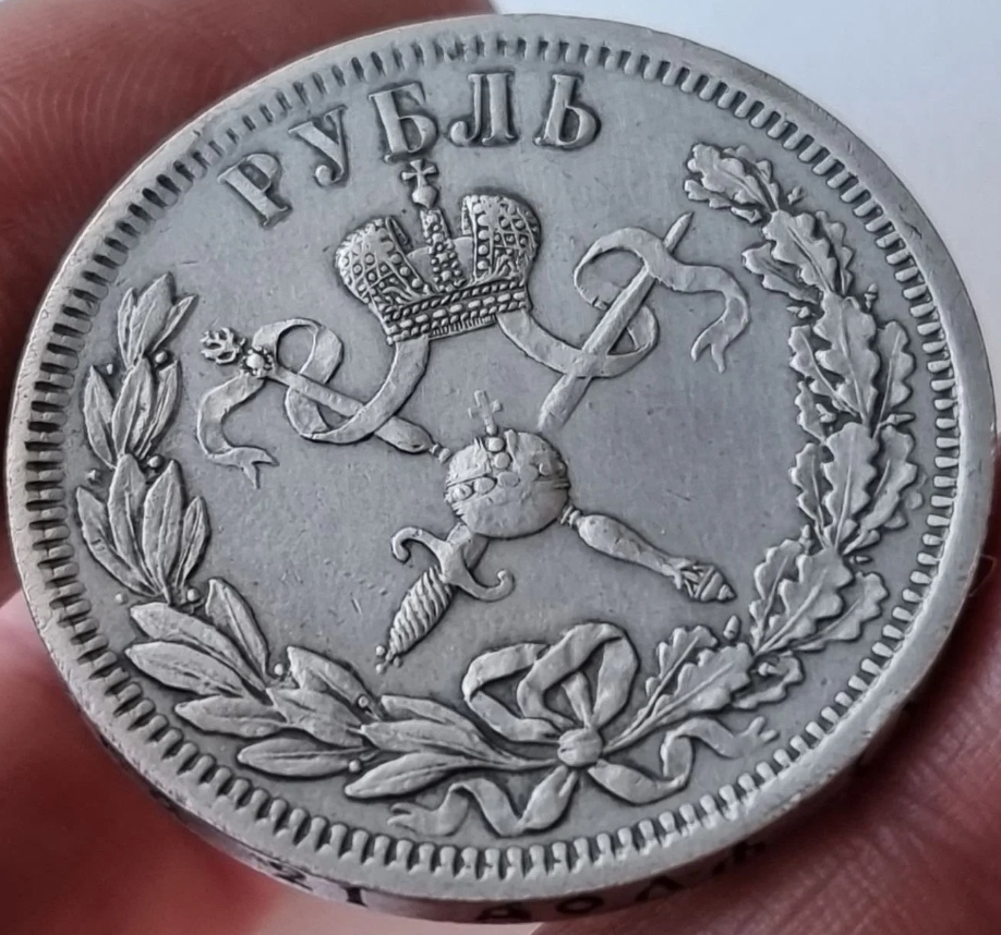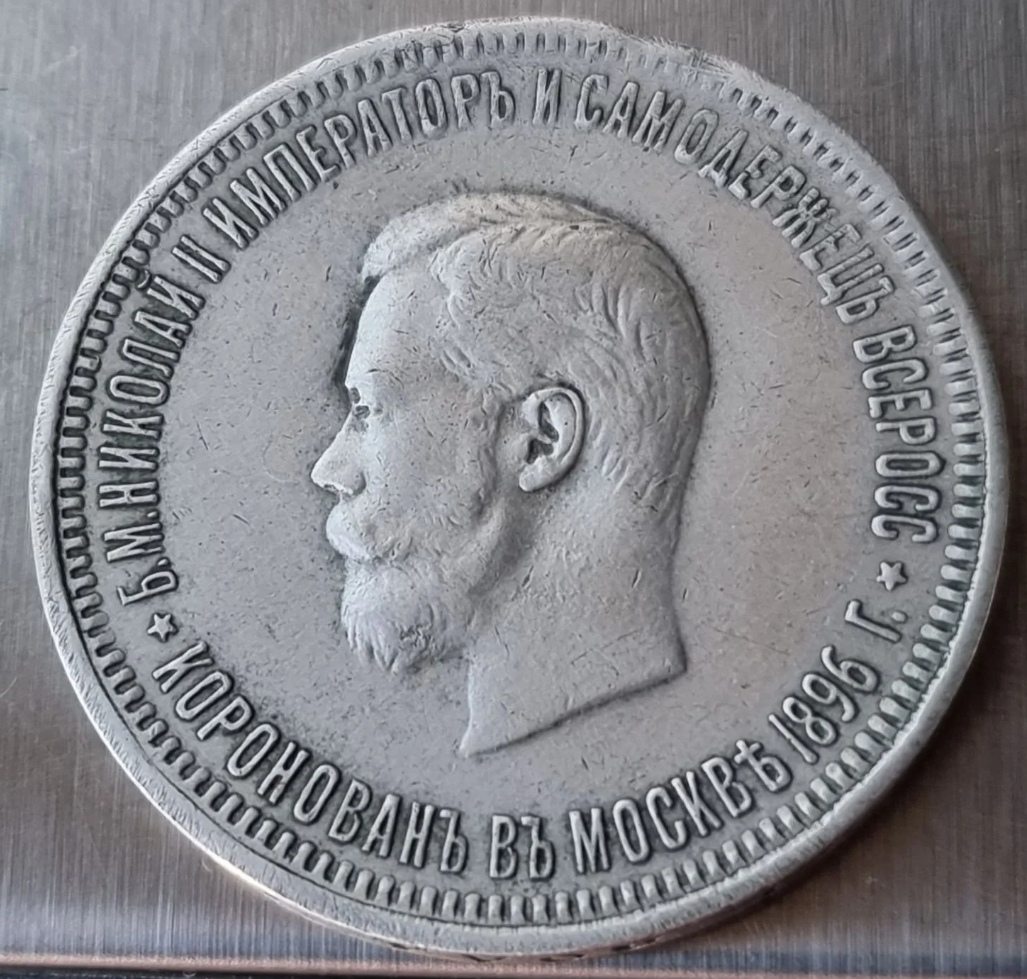 Монета посвящена коронации императора Николая II. Оригинальный рубль 1896 года чеканился из серебра 900-й пробы на Санкт-Петербургском монетном дворе и является одним из самых известных и ценных памятных рублей Российской Империи. Представленный экземпляр является копией, о чём прямо указано в описании поста.