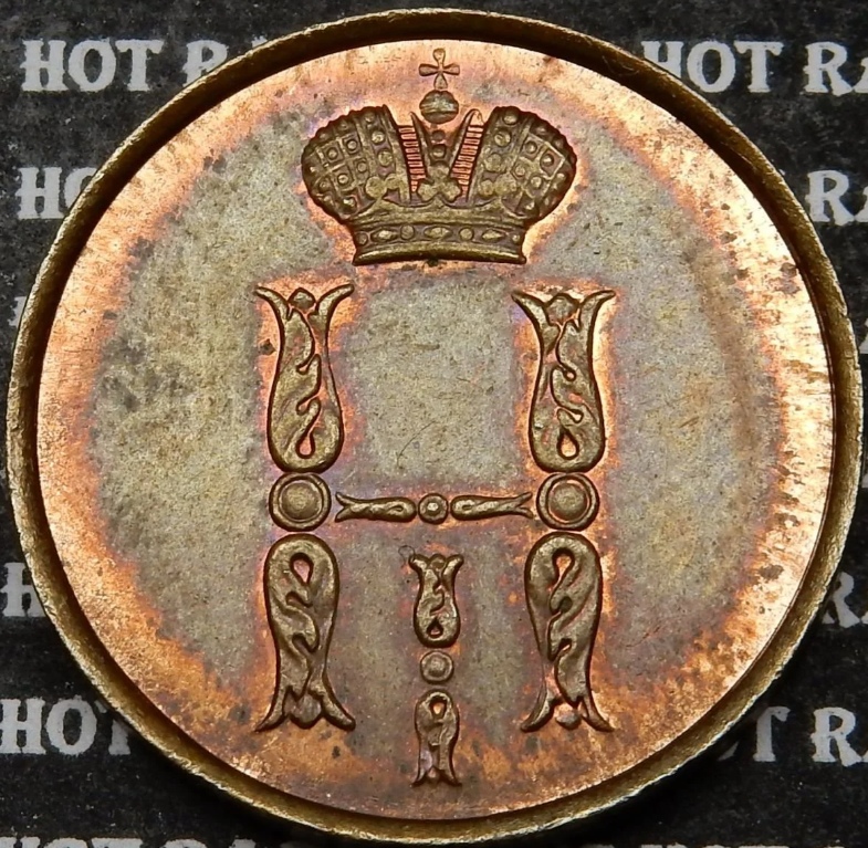Медная монета Российской Империи номиналом 1 копейка, отчеканенная в период правления Николая I. Представленный экземпляр является современной копией, изготовленной в 1990-х годах. Это не оригинальная монета и не новодел, а сувенирная реплика, не имеющая коллекционной ценности.