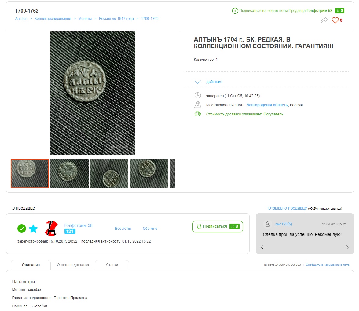 Алтын 1704 года Петра I — классическая подделка-фуфло