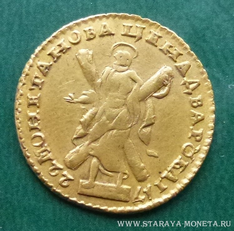 Монета номиналом 2 рубля 1722 года, отчеканенная в правление Петра I из серебра. В оригинале это редкая и ценная монета, однако представленный экземпляр является подделкой. Об этом прямо заявляет автор поста, а также косвенно подтверждает единственный комментарий, интересующийся лишь ценой, что типично для обсуждения копий.
