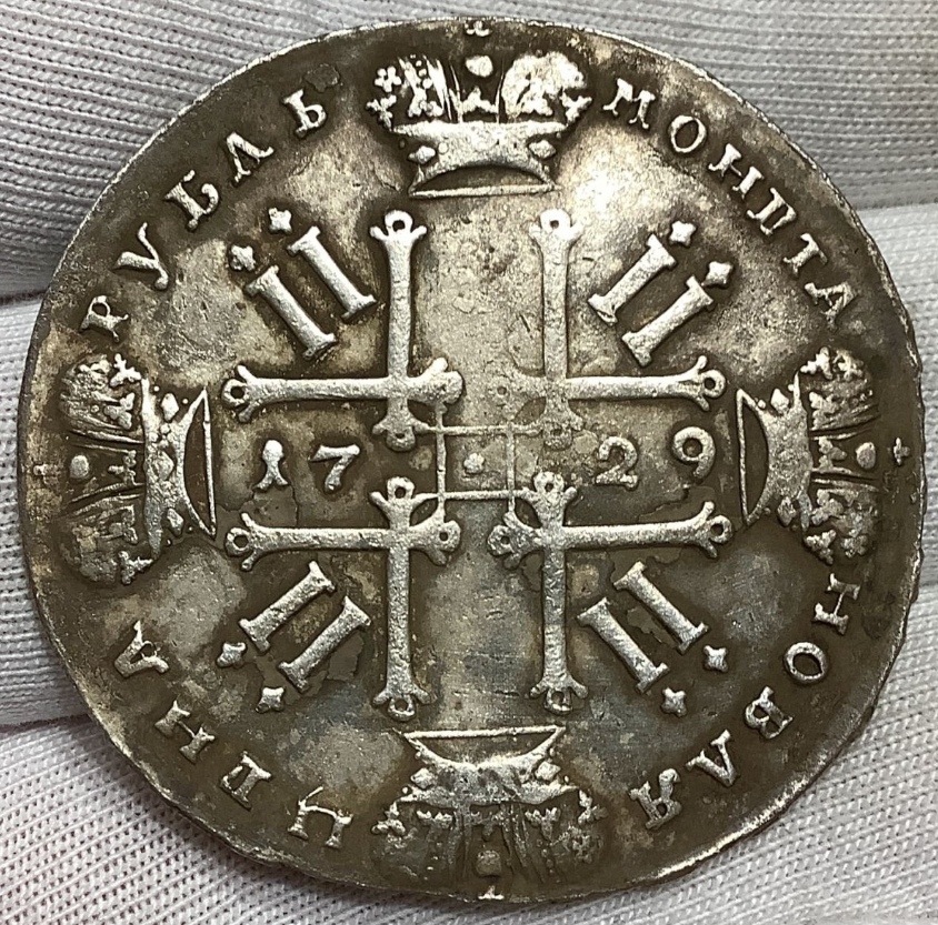 Монета представляет собой копию серебряного рубля 1729 года, отчеканенного в период правления Петра II. Оригинальные рубли этого года являются редкими и ценными коллекционными экземплярами. В данном случае автор поста прямо указывает, что это копия, что делает монету современной подделкой, не имеющей исторической и материальной ценности.