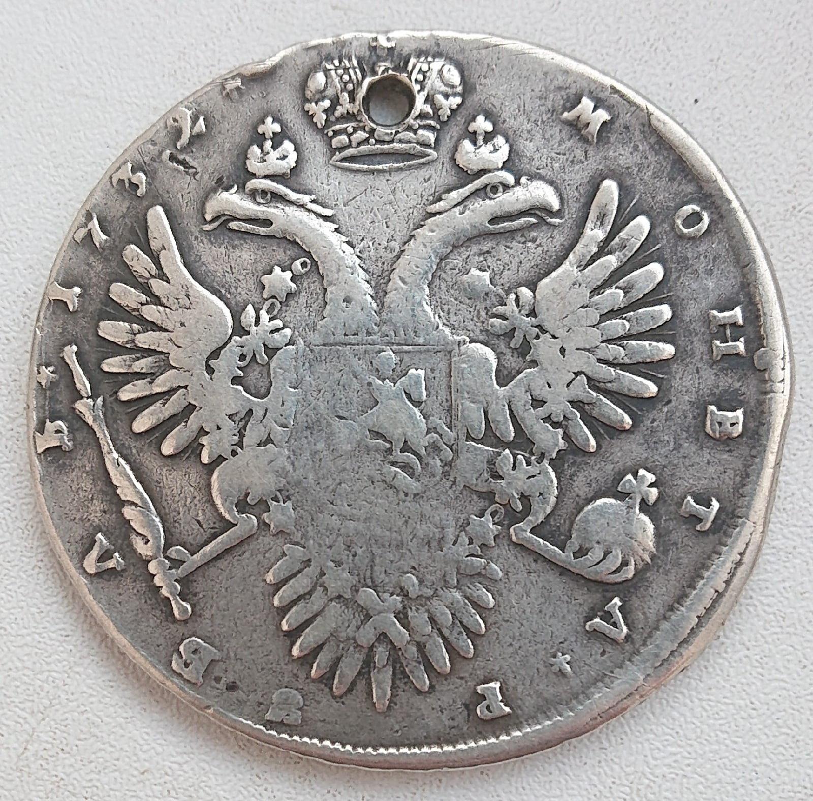 Рубль 1732 года Анны Иоанновны — подлинная монета с отверстием