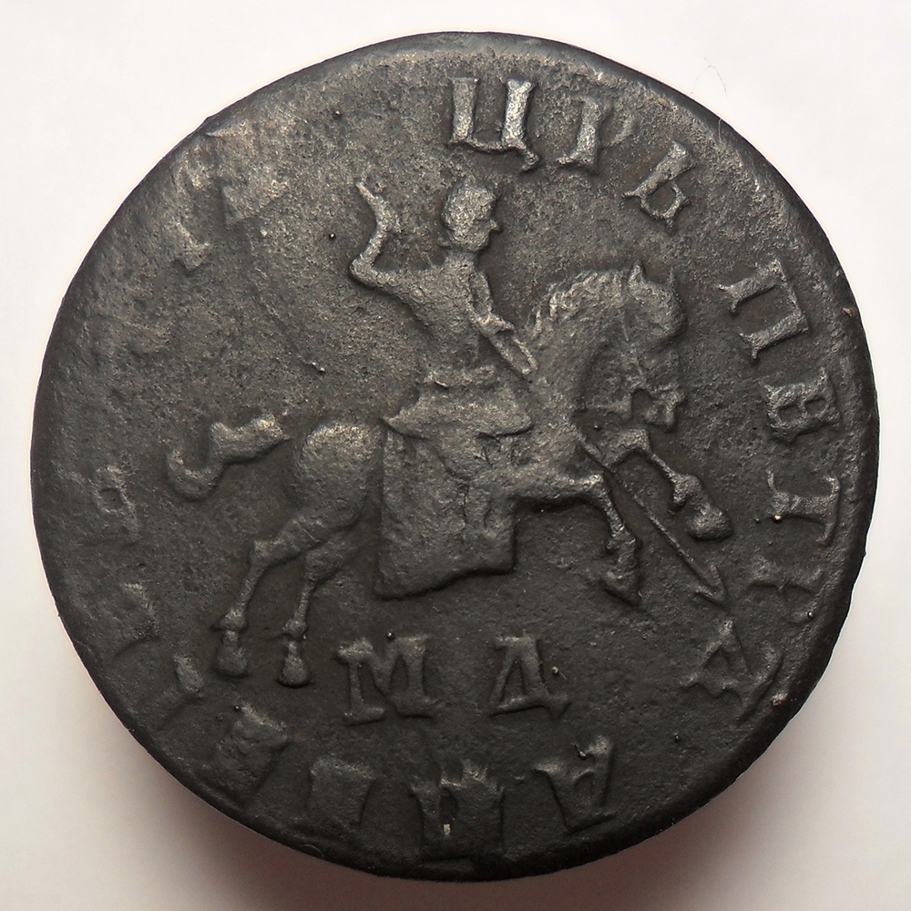 Монета представляет собой копию медной копейки 1708 года, отчеканенной в период правления Петра I. Оригинальные монеты этого типа чеканились на заготовках в виде проволоки и имеют характерные неровности. Данный экземпляр является современной репликой, о чём прямо указано в описании поста.