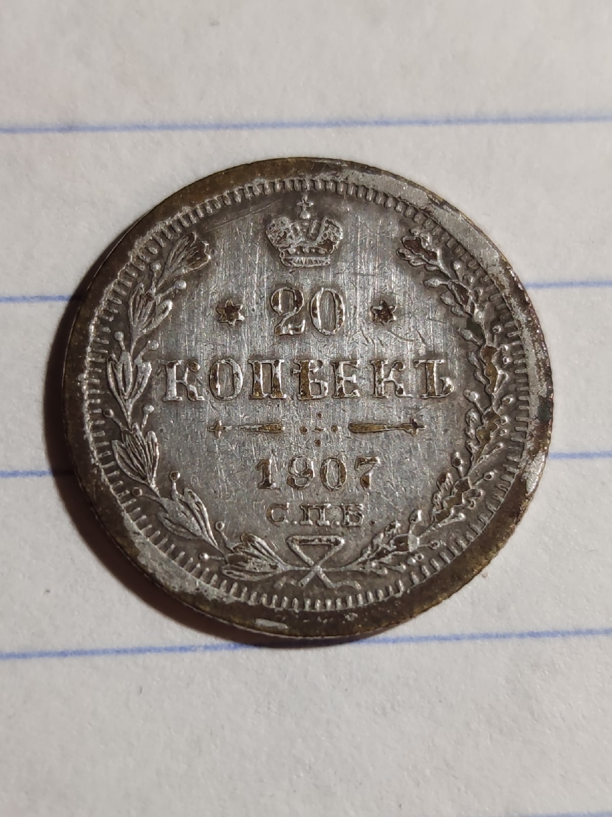 20 копеек 1907 года — фальшивая монета Николая II