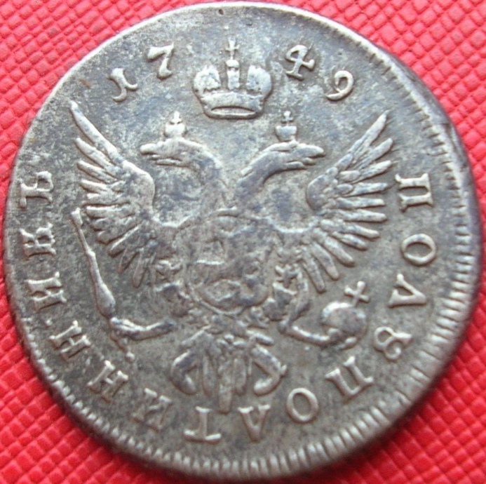 Монета представляет собой полуполтинник (25 копеек) времён правления императрицы Елизаветы Петровны, отчеканенный в 1749 году из серебра. В оригинале это редкая и ценная монета, однако представленный экземпляр является подделкой. Автор поста прямо указал на это, а в комментариях не было аргументов в пользу её подлинности.
