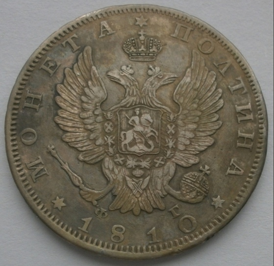 Представленная монета — серебряный рубль 1810 года, отчеканенный в правление императора Александра I. Монета является современной подделкой низкого качества, массово производимой для продажи на площадках вроде AliExpress. Эксперты отмечают грубые ошибки в изображении орла, рельефе, канте и общей детализации, что не соответствует подлинным экземплярам.
