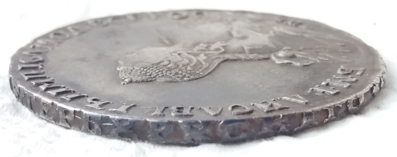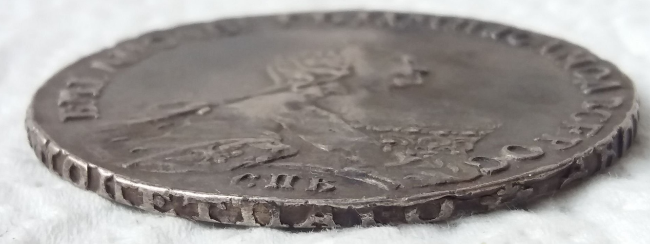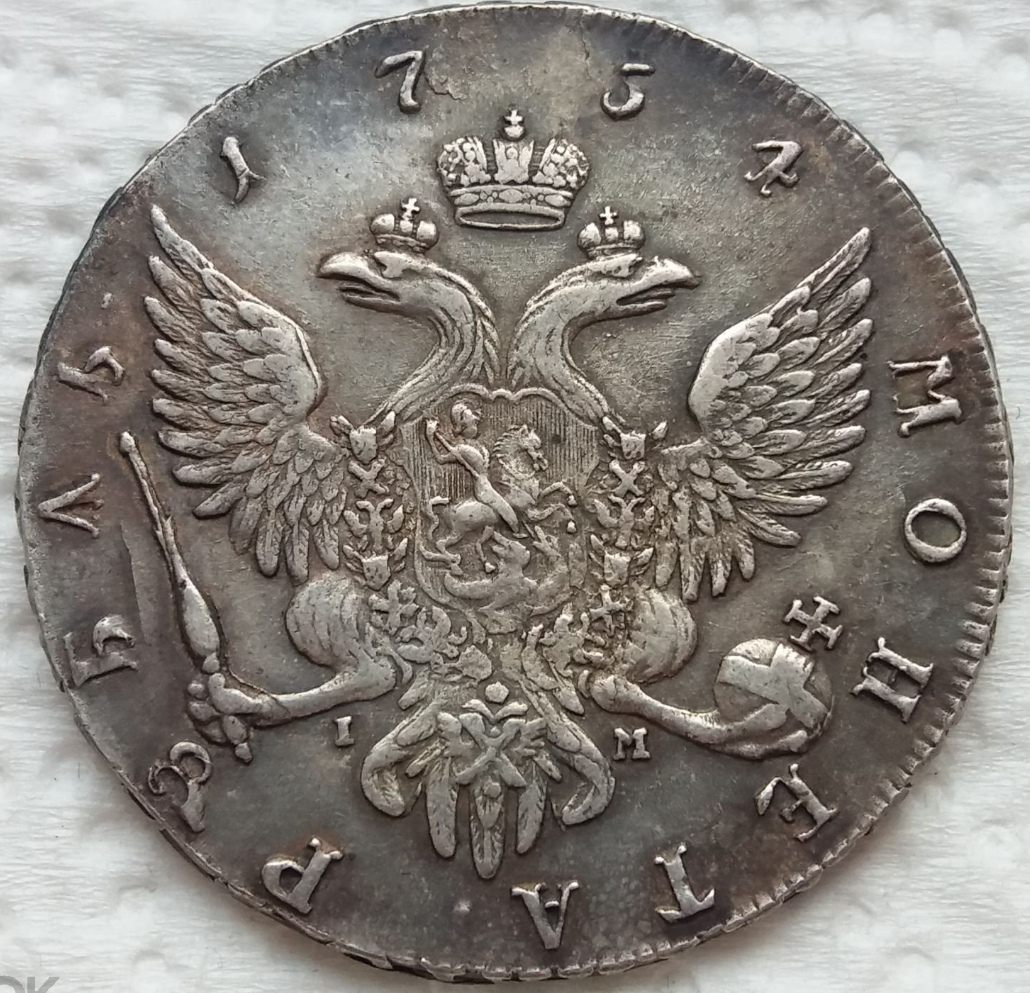 Монета представляет собой копию серебряного рубля времён императрицы Елизаветы Петровны, отчеканенного на Санкт-Петербургском монетном дворе в 1754 году. В оригинале это редкая и ценная монета, однако в данном случае автор поста прямо указывает, что это реплика. Такие копии часто изготавливаются для коллекционеров-новичков или в сувенирных целях.