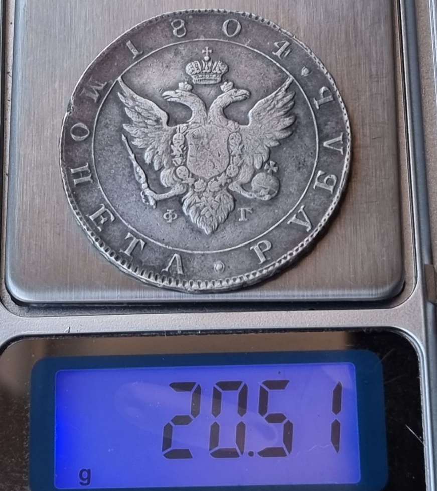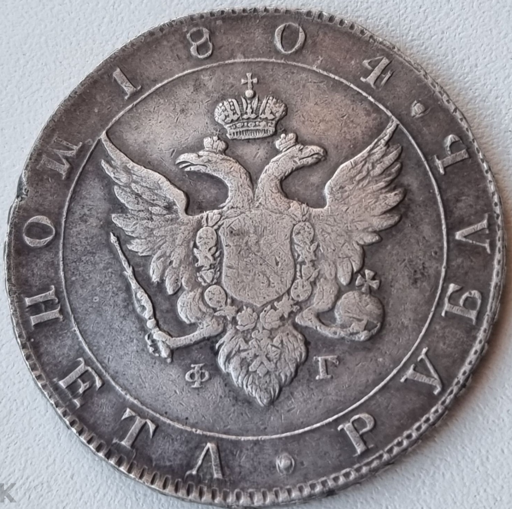 Монета представляет собой копию серебряного рубля 1804 года Санкт-Петербургского монетного двора (СПБ) периода правления Александра I. Оригинальные рубли этого года чеканились ограниченным тиражом и являются редкими. В данном случае автор поста прямо указал, что это копия, что исключает подлинность экземпляра.