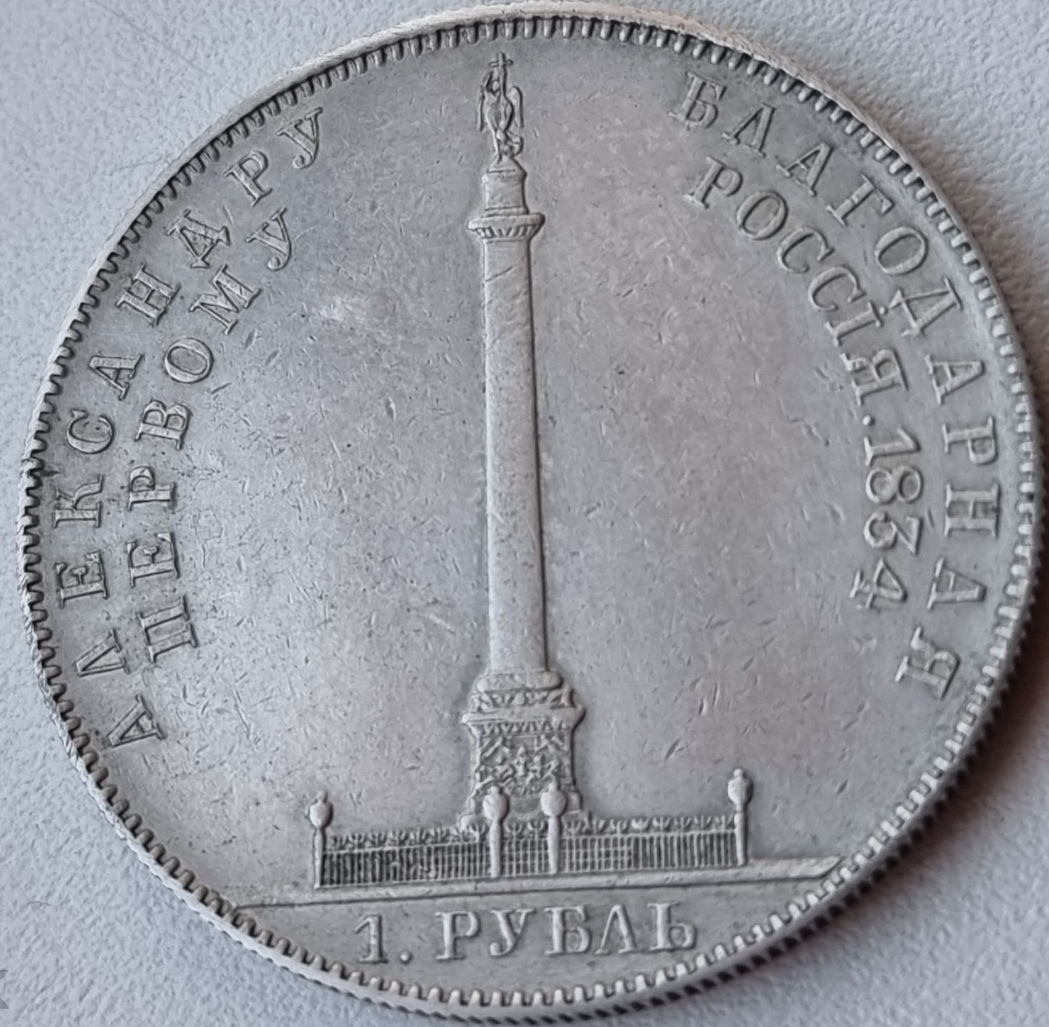Монета представляет собой копию серебряного рубля 1834 года, отчеканенного в период правления императора Николая I. В оригинале такие монеты изготавливались из серебра 868-й пробы и имели определённые характеристики гурта и деталей портрета. В данном случае автор поста прямо указывает, что это копия, что автоматически классифицирует её как неоригинальный экземпляр, не имеющий коллекционной ценности подлинной монеты.