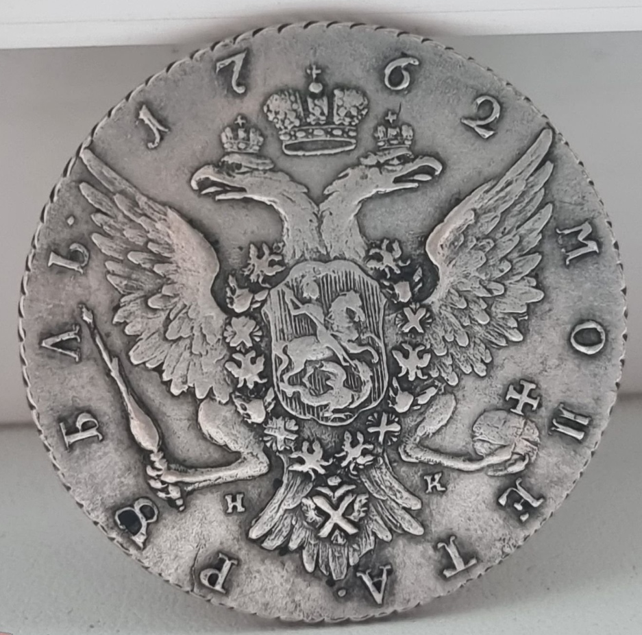 Монета представляет собой копию серебряного рубля 1762 года, отчеканенного в Санкт-Петербурге в краткое правление императора Петра III. Оригинальные монеты этого типа являются редкими и ценными. Владелец поста прямо указал, что это копия, что подтверждает её неоригинальное происхождение.