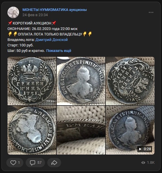 Гривенник 1751 года — поддельная монета Елизаветы Петровны