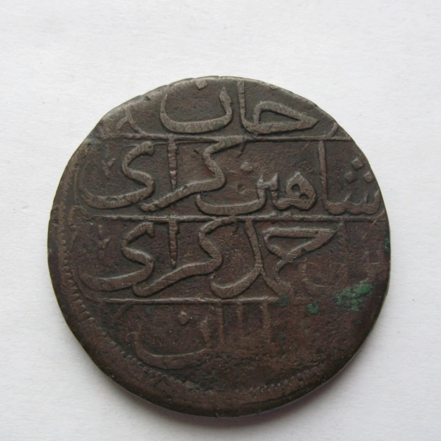 Монета крымского хана Шахин Гирея, чеканенная в конце XVIII века по российской монетной системе как аналог 5 копеек Екатерины II. Представленный экземпляр, несмотря на сомнения автора поста в деталях чеканки, признан комментаторами подлинным. Неровности рельефа и следы износа характерны для монет этого периода и не являются признаками литой подделки.