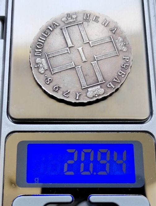 Монета представляет собой копию серебряного рубля 1798 года, отчеканенного в правление императора Павла I. Оригинальные монеты этого типа имеют высокую коллекционную ценность. Представленный экземпляр является современной репликой, о чём прямо указано в посте и подтверждено комментаторами.
