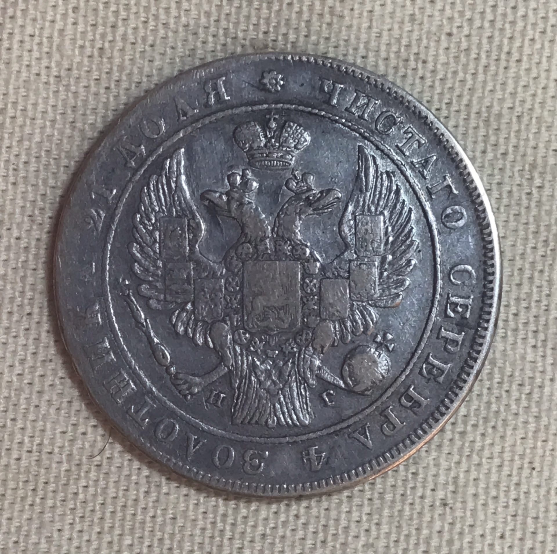 Серебряный рубль 1834 года Николая I — подлинная монета
