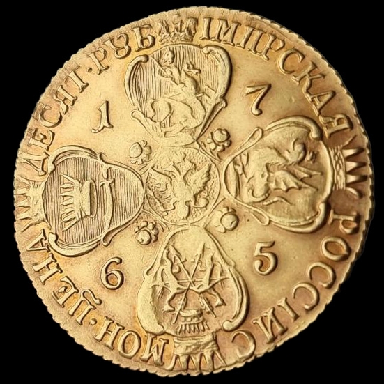10 рублей 1765 года — копия золотой империальной монеты
