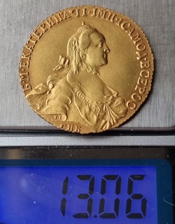 Монета представляет собой копию золотой 10-рублёвой монеты (империала) периода правления Екатерины II. Оригинальные монеты этого типа чеканились на Санкт-Петербургском монетном дворе и являются редкими и ценными. Представленный экземпляр является заведомой репликой, о чём прямо указано в описании поста.