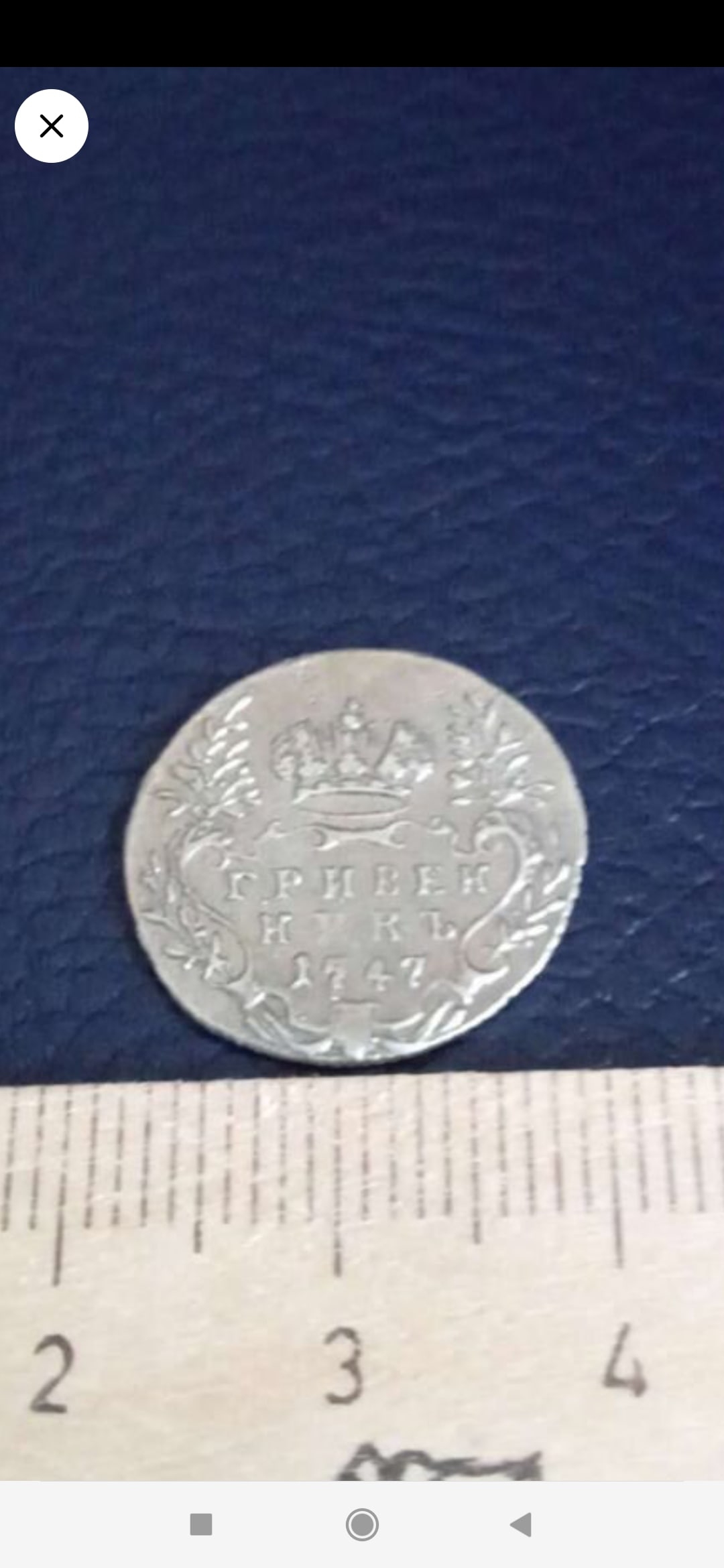 Монета представляет собой гривенник (10 копеек) времён правления императрицы Елизаветы Петровны, отчеканенный в 1747 году из серебра. В комментариях сообщества нумизматов монета единодушно признана подделкой. Отсутствие чётких фото не отменяет общего консенсуса о её неподлинности, основанного на стилистике и характере предложения.