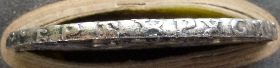 Монета представляет собой копию серебряного рубля 1754 года, отчеканенного при императрице Елизавете Петровне на Санкт-Петербургском монетном дворе (обозначение СПБ). Несмотря на качественное исполнение аверса, подделка выдаёт себя деталями гурта, пузырчатой надписью "СПБ" и характерными признаками массовой штамповки.